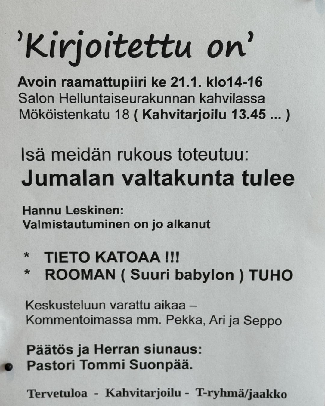 KLO 18.00 KRISTITTYJEN YHTEINEN RUKOUSILTA